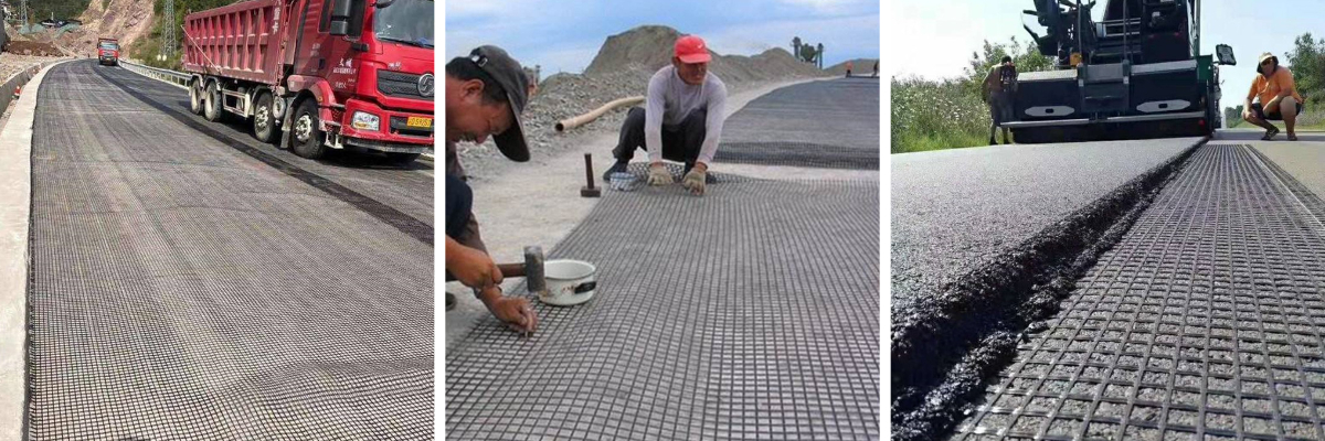 Поверхностное покрытие прочно сцепляется с асфальтом; сетка механически сцепляется с заполнителем, эффективно распределяя напряжение и подавляя образование отражающих трещин.